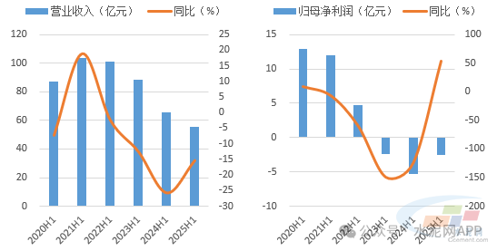圖1、2:2025年上半年山水水泥營收、利潤走勢(shì)
