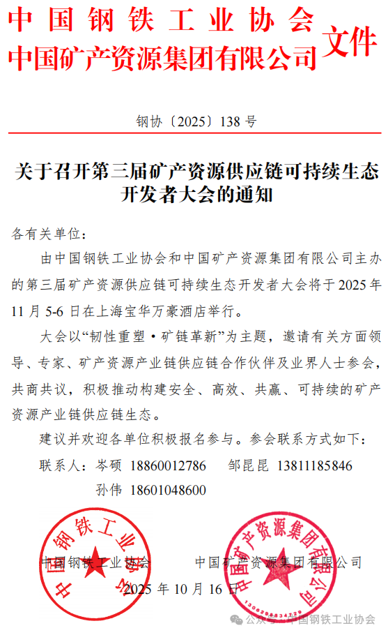 關(guān)于召開第三屆礦產(chǎn)資源供應(yīng)鏈可持續(xù)生態(tài)開發(fā)者大會的通知