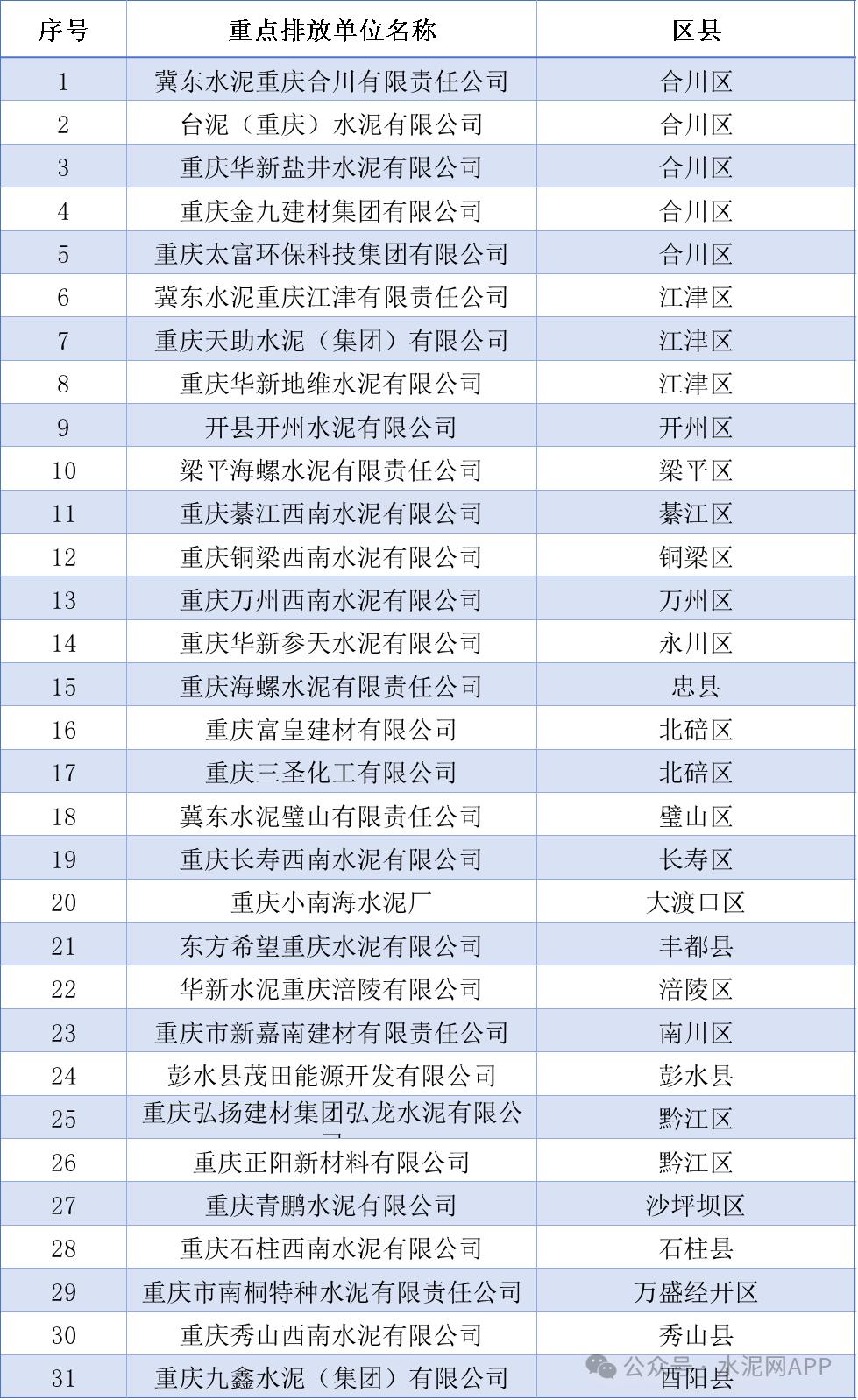 重慶市生態(tài)環(huán)境局9月23日發(fā)布《重慶市2023年度碳排放配額分配實(shí)施方案》(渝環(huán)辦〔2024〕162號),根據(jù)《重慶市生態(tài)環(huán)境局關(guān)于調(diào)整重慶碳市場納入標(biāo)準(zhǔn)的公告》(渝環(huán)〔2023〕55號),按年度溫室氣體排放量達(dá)到1.3萬噸二氧化碳當(dāng)量(綜合能源消費(fèi)量約5000噸標(biāo)準(zhǔn)煤)及以上的工業(yè)企業(yè)的納入標(biāo)準(zhǔn),對重慶碳市場原有名錄進(jìn)行更新,形成了重慶碳市場2023年度重點(diǎn)排放單位名錄,共334家重點(diǎn)排放單位納入2023年度配額管理。其中水泥制造行業(yè)名單如下: