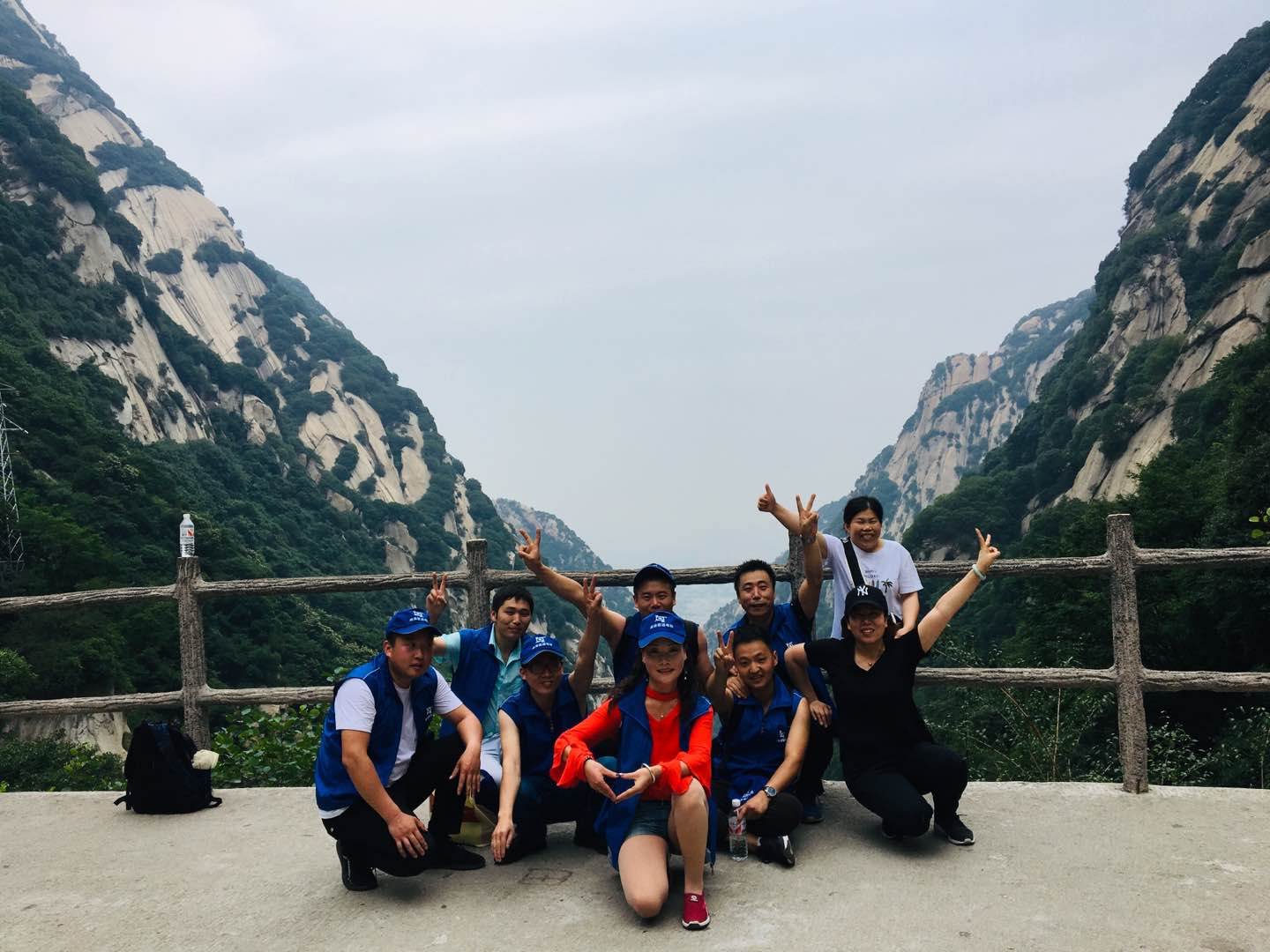 2019年6月15日早上九點半,商洛菱通電梯工程有限公司,一行九人從商州整裝出發(fā),盤山越嶺自駕行駛了兩個多小時的路程,終于抵達華山腳下。稍作休息在山下用過午餐,已經(jīng)是下午兩點多了,我們備足食物和水,準備登山之旅。這天天氣還算不錯,沒有艷陽高照,也沒有陰云密布,給人一種神清氣爽的登山條件。一路上同志們互幫互助堅持不懈,經(jīng)歷了千尺幢、百尺峽幾個比較險峻的路段,克服了一切艱難險阻。用了五個多小時終于到達了華山北峰,我們在北峰稍作停留拍照留念,之后繼續(xù)向中峰和東峰前進,雖然中途有下過雨,但是老天也算沒辜負我們的期望。沒影響我們看當天的日落。我們最終在晚上九點多抵達東峰,大家已是筋疲力盡汗流浹背了,領(lǐng)導(dǎo)決定在東峰簡單用餐后休息一晚,第二天去登南峰和西峰,晚上大家睡得可香了。