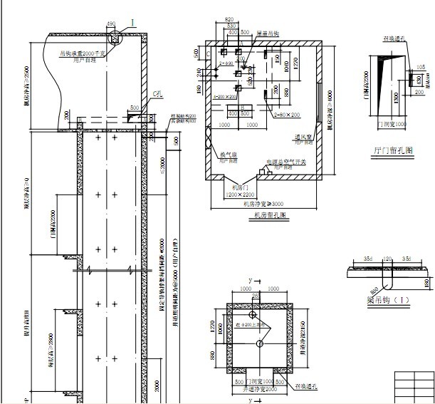 三是平衡錘的位置和一般與電梯機房的拓展方向有關。四是要注意機房地面的留洞和頂面的吊鉤,還有機房門的凈寬要求和通路要求。